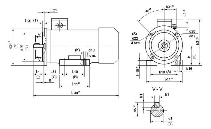 Габаритные размеры электродвигателя 5А50МВ4 IM 2081
