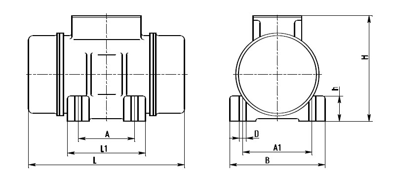 | Тип вибратора | L | B | H | L1 | A | A1 | D | h |