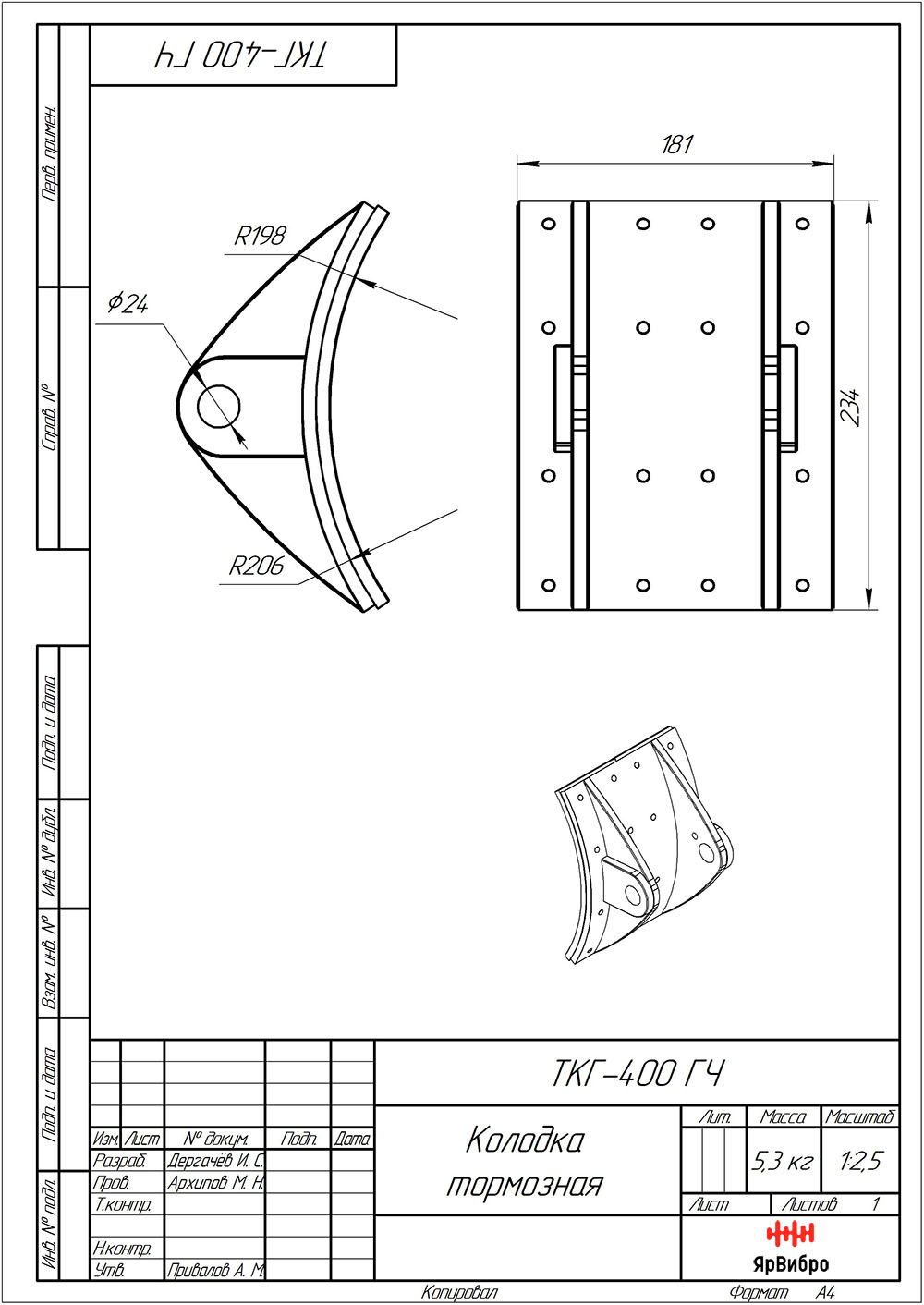 Габаритные размеры тормозной колодки к ТКГ-400